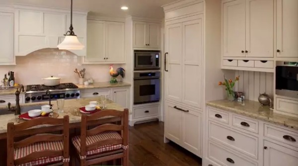 通常在设计橱柜的时候,可以巧妙的将其设计进去,这样不但节省空间,而且美观。
