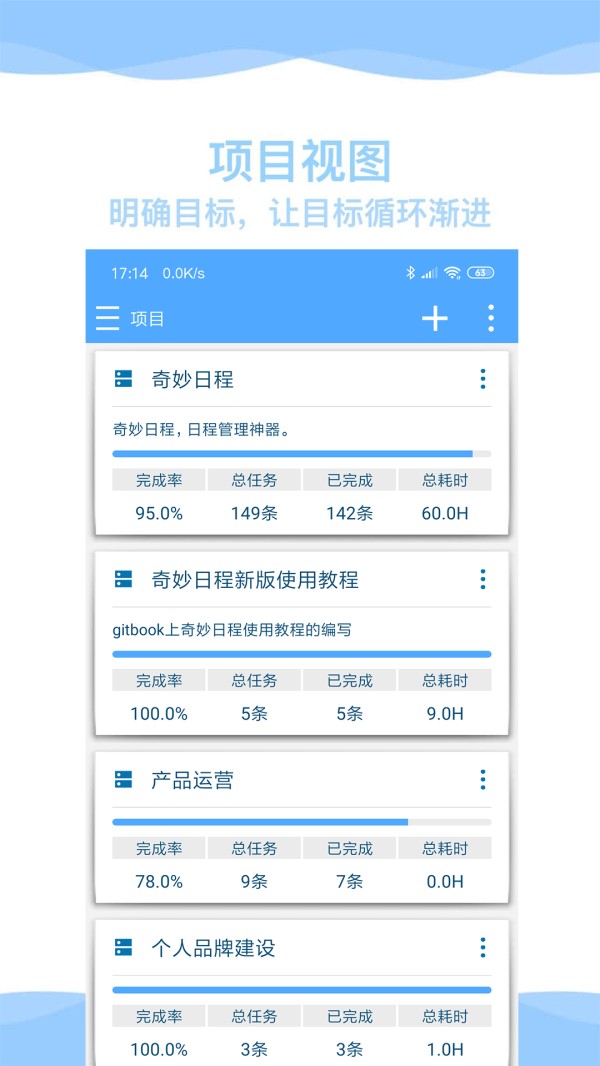奇妙日程是一款功能强大理论全面的时间管理、行动管理、日程管理、日程量化软件。您可以用它来掌控日常生活和工作的所有事项。她相对于其他时间管理软件她更加让您重视平衡,健康发展。掌控生活,如此奇妙!
