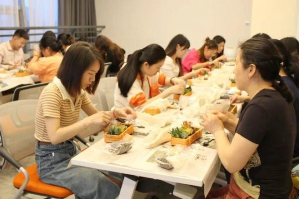 取材、构思、组合、搭配、培土、栽种、铺面、装饰……在老师的示范和指导下,大家围坐在一起,尽情释放自己的想象力,充分发挥自己的创造力,精心布置各具特色的“盆中花园”,每个人都兴趣盎然、乐在其中。经过一个多小时的制作,大家纷纷完成了自己的作品,一盆盆造型各异、萌趣可爱、精致美观的多肉小盆栽作品就“新鲜出炉”了。