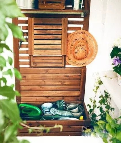 如果想要纯净的绿色空间,收纳型的阳台家具就能派上大用场,杂物通通隐形起来,还阳台一个绿色自然的有氧空间。