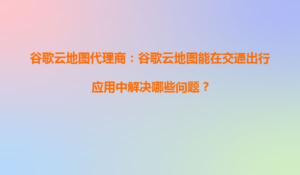 谷歌云地图代理商:谷歌云地图能在交通出行应用中解决哪些问题?