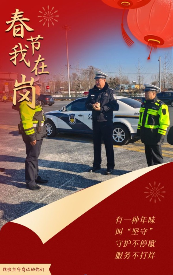 在这个充满喜庆和祥和的节日里,全市公安交警用他们的坚守和付出,为市民的出行安全保驾护航,努力为广大群众度过一个平安祥和的春节营造良好的道路交通环境。