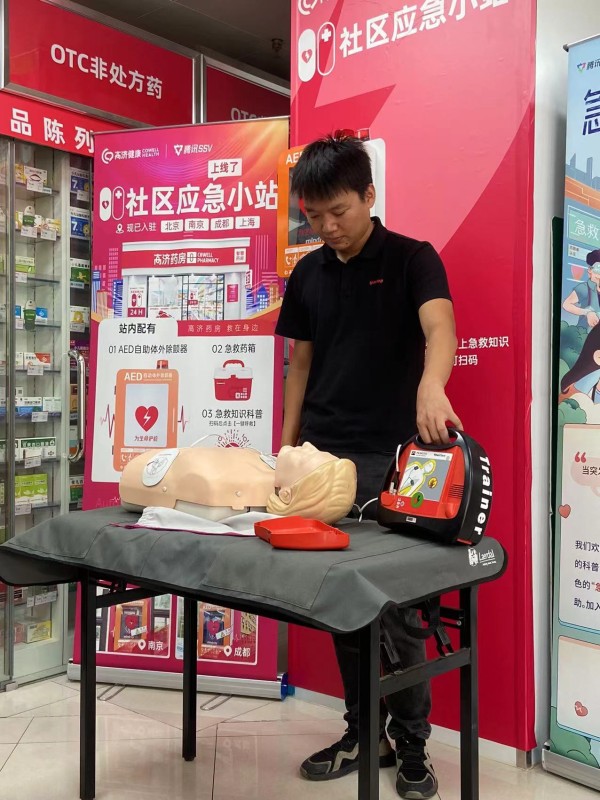 今日,高济健康同腾讯可持续社会价值事业部(SSV)展开合作,以高济健康10000余家线上线下一体化的智慧药店为依托,打造了“社区应急小站”,首批将在北京、成都、南京和上海四个城市落地的32家样板店。另外,两家企业还计划年内推动更多小站在全国范围内逐步落地,并同属地急救中心、医院及社区联动,进一步完善救助体系,助力社区基层应急响应能力建设。