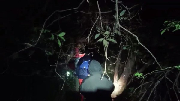12日晚7点多,北极星救援队再次接到报警,在同安北辰山景区龙泉洞附近,有两名女子因天黑迷路受困。救援队立刻召集队员赶往现场。约两个小时后,救援人员在一处崎岖的山路上找到了受困的两名女子。当时这两名女子冷得发抖,救援人员递给她们水和面包,在简单休息后带她们往山下转移。