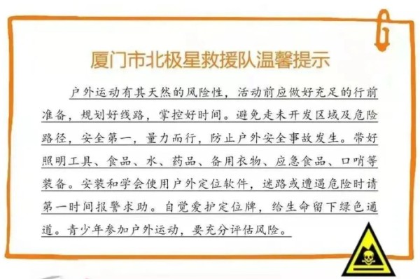 北极星救援队提醒: