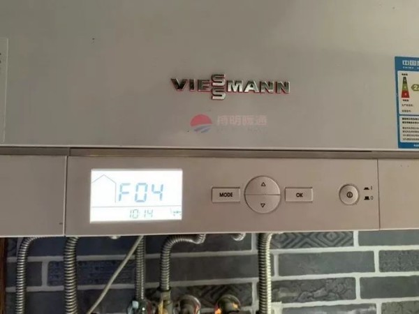 锅炉故障:家里的菲斯曼壁挂炉闪烁F04,采暖系统不能使用,生活热水也不能使用,显示屏出现F04。
