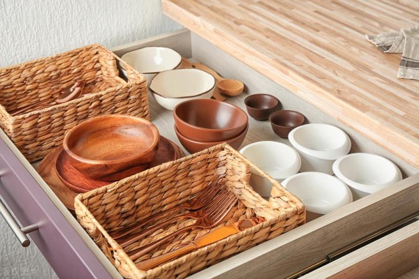 置物灶台下方的抽拉式橱柜适合存放各种锅碗瓢盆,整洁又卫生。厨房转角可以装个转角抽拉式拉篮,不仅分层还能延展,最大化利用了橱柜转角里难以拿取但又是空间巨大的部分。用来放家里的炒锅蒸锅之类的“大家伙”最合适。