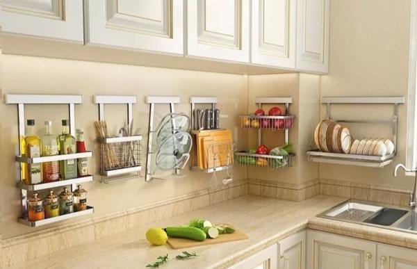 靠近灶台边的墙面,可以安装几个锅盖架。我们平时做饭,有时候需要焖有时候又需要炒,如果灶台边空间不够,就很不方便。转角墙面安装锅盖架,做饭的时候有需要顺手就可以把锅盖放在架子上,安全又方便。