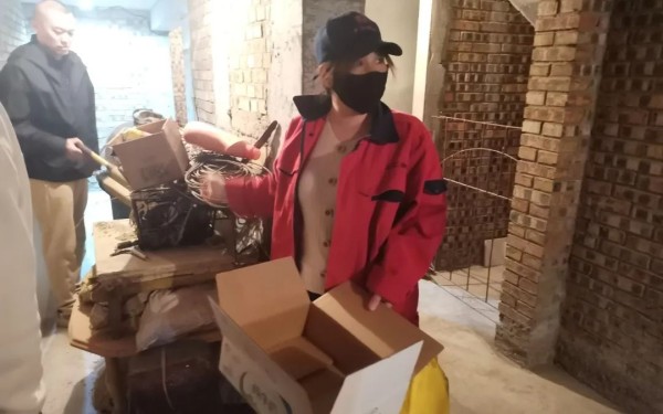 清理当天,工作组成员分工负责、协同配合,在住户的配合下,逐一搬离堆放在地下室的废旧木板、破旧纸箱、泡沫箱等易燃材料和其他各类杂物。
