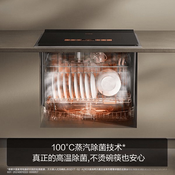 高温物理消毒,“安心碗”的核心保障!对于有老人、小孩或对健康特别关注的家庭,餐具的卫生至关重要。方太02-A2的核心技术之一是“100℃蒸汽除菌”功能。在洗涤或单独消毒阶段,机器能产生并保持高温饱和蒸汽。这种高温高压蒸汽不仅能有效溶解顽固油污,更能穿透式地覆盖餐具表面和缝隙,消灭餐具表面残留的细菌(如常见的大肠杆菌、金黄色葡萄球菌等)、病毒。其除菌效果能达到较高的行业标准(具体可参考产品认证),相比传统温水漂洗或仅靠洗碗粉/洗碗块,提供了物理级的安全保障,让洗碗机不仅负责清洁,更成为守护家庭健康的防线。尤其在疫情期间或季节交替时,这一功能的价值更为凸显。