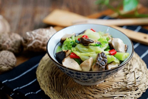 3. then stir-fry the mushrooms and cabbage together until they are delicious;