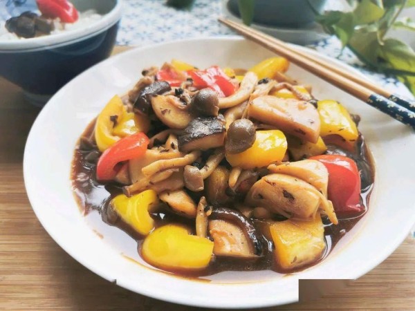 Braised mushrooms with bell peppers
