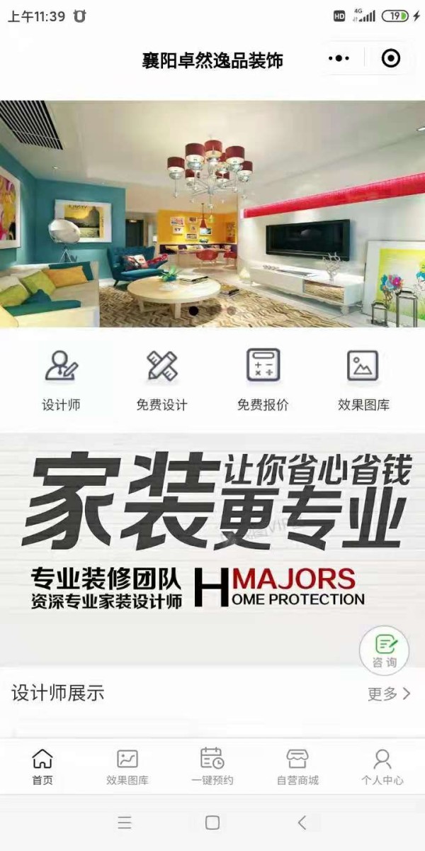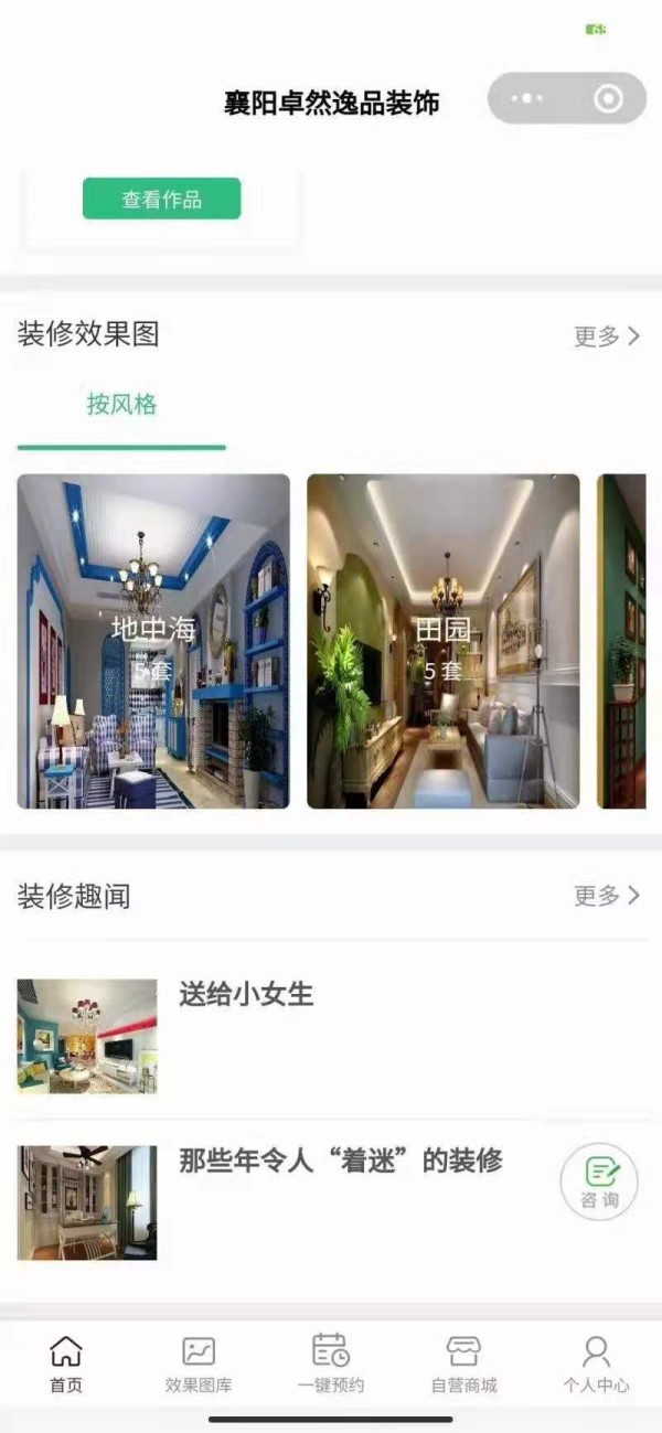 装修小程序,一键预约,上门清洗维修安装,线上商城,案例展示,设计师列表等功能。