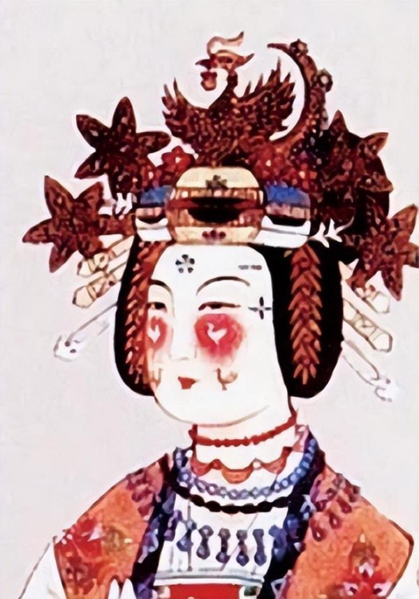 这是装饰面颊酒窝的一种妆容。贴在面颊的装饰物则被称为靥钿,更早的名称是“的”。