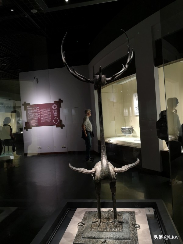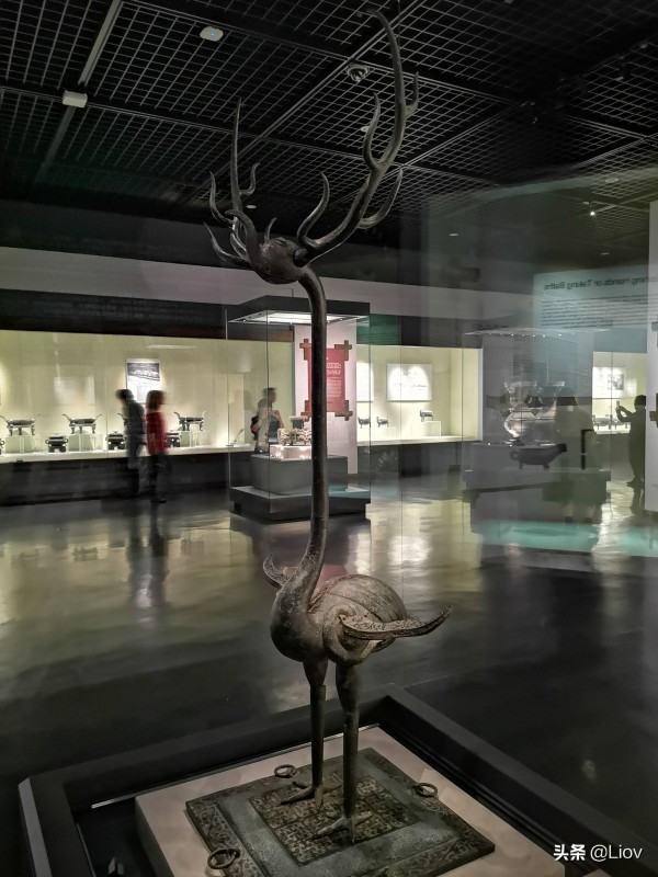 整个器物由鹤身、鹤腿、鹿角、两翅、座板共8个部分组装而成。