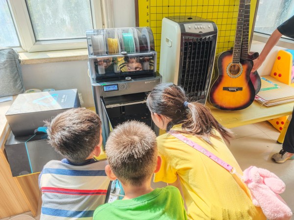 “3D打印创客”采用阶梯式教学架构,涵盖技术基础认知、功能设计实践和实操打印。授课老师通过图片、视频和实物展示,深入浅出地讲解3D打印技术原理及在工业制造、医疗健康、文化创意、日常生活等领域的广泛应用前景。孩子们在教师指导下,学习了使用专业切片软件对三维数字模型进行处理,包括模型导入与定位、支撑结构设置、打印参数调整。从简单的口哨到卡通人物模型,逐步完成基础建模操作和配色设计。在老师的监督下孩子们亲手启动打印任务,孩子们围在打印机前全程观察材料如何一层层精准堆积,最终将电脑屏幕上的虚拟模型变成手中实实在在的立体作品。通过这样“看得见、摸得着”的科技体验,让孩子们不再觉得高科技遥不可及,也为孩子们提供了一个直观了解现代制造技术、锻炼逻辑思维与空间想象力的有效平台。