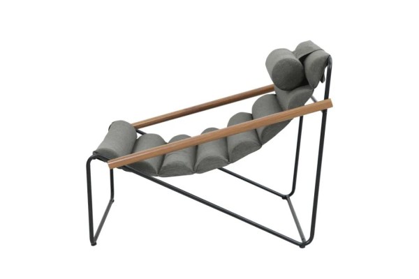 躺椅外观时尚简约, 整体外观为Z字型,扶手位置应用了木纹热转印铁工艺,连接管孔应用了热熔钻,增强产品的稳定性。座布为牛津布,内夹密度25海绵。同时搭配了可移动圆形头枕,消费者可根据自身的高度进行调节达到更好的舒适度。