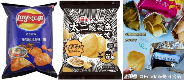 乐事和上好佳均推出过酸汤鱼味的薯片;还有之前Foodaily采访过的云贵薯片品牌噜咪啦,即将上市的新口味中就有贵州酸汤味。