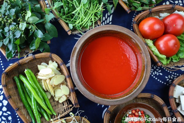 云南酸汤则属于天然酸,由水果蔬菜熬煮而成,酸味主要来源于酸角、木瓜、柠檬、百香果、青芒果等果蔬。