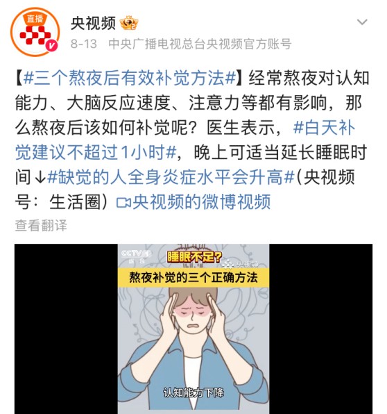 当睡眠成为关注焦点,平台聚合权威媒体和专家账号,为“静养派”职场人提供科学建议,助力高效休息。如@央视频 发布“三个熬夜后有效补觉方法”视频播放量达4万,话题阅读量高达345.6万,@人民网 发布“熬夜后如何补救,医生教你三招”也有4.7万次观看,打工人在视频底部纷纷留言表示“学到了”“已经收藏”。