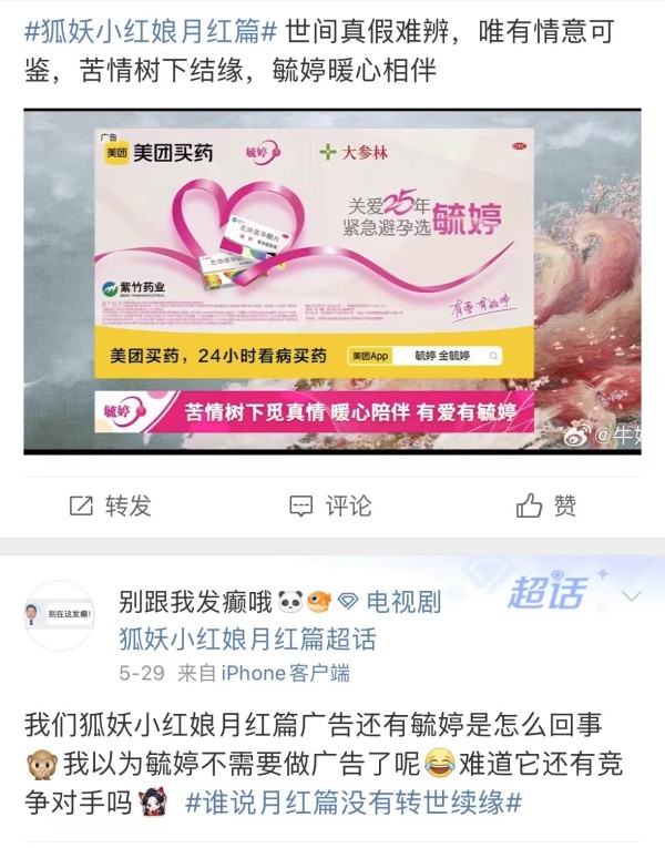 大剧IP与毓婷品牌的高契合度引发了剧集观众的共鸣,激发了他们的分享欲望。观众们纷纷化身品牌的“自来水”,在微博、小红书等多个主流社交平台上,从多个角度讨论并分享毓婷广告投放的精妙之处,不仅为品牌创造了显著的曝光机会,也成为了优质创意实现裂变式传播的典型案例,通过口口相传的口碑传播方式,为毓婷在年轻女性群体中建立了持久的品牌忠诚度。
