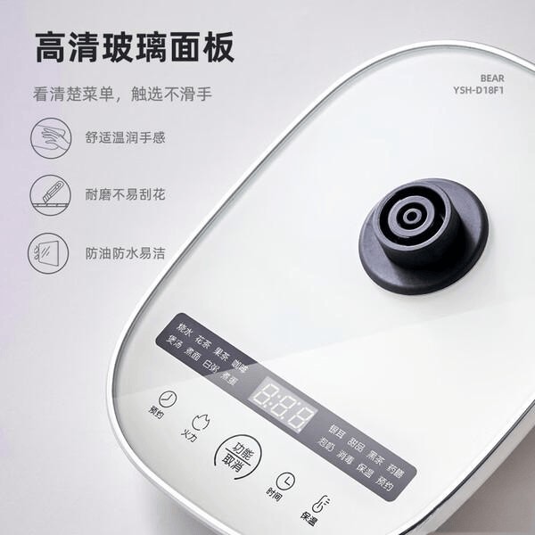 小熊YSH-D18F1配备不锈钢滤网,泡茶时轻松实现茶水分离,确保浓郁的茶汤。它拥有多种预设菜单,涵盖烧水、花茶、果茶、甜品等功能,甚至还有药膳和煲汤的选择。