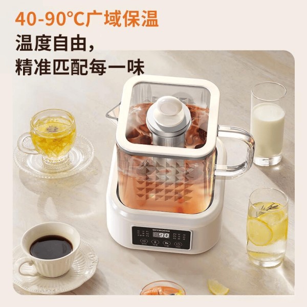这款养生壶主打多功能性,能够满足日常的各种养生需求,包括烧水、煮茶、煲汤和炖甜品等。它支持40℃-90℃的精准温控,能够根据不同食材和饮品选择合适的温度,确保口感和营养的最佳保留。此外,24小时预约和12小时保温功能,让你无论早晚都能轻松享用热饮。