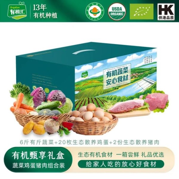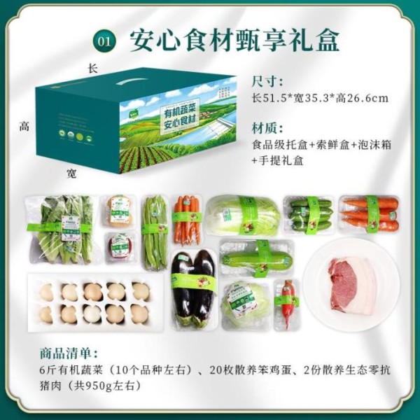 有机汇针对部分有礼赠需求的客户设有蔬菜套餐、肉类套餐、肉蛋菜套餐的精包装礼盒,满足各类客户不同场景的使用需求。