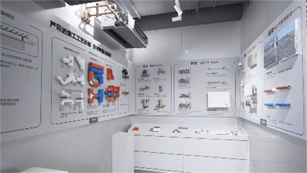走进A.O.史密斯展厅另一侧,排列有序的各色器材组成了AI-LiNK好风好水智慧集成系统的施工场景。检验一站式家居解决方案的优劣不止要看使用体验,更要看其背后的安装工艺与隐蔽工程。