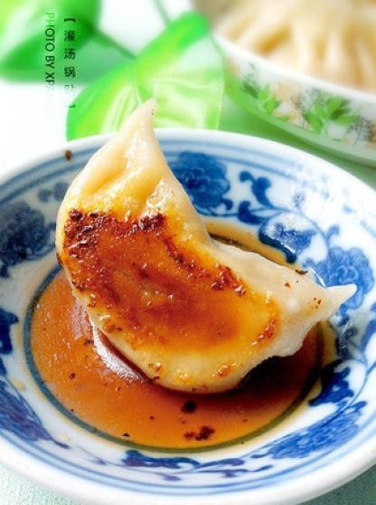 [灌汤锅贴][食材:小麦面粉,猪肉] 灌汤小笼包盈余的肉馅,用来制造口感完整差别的锅贴,也是很棒的早饭哦~