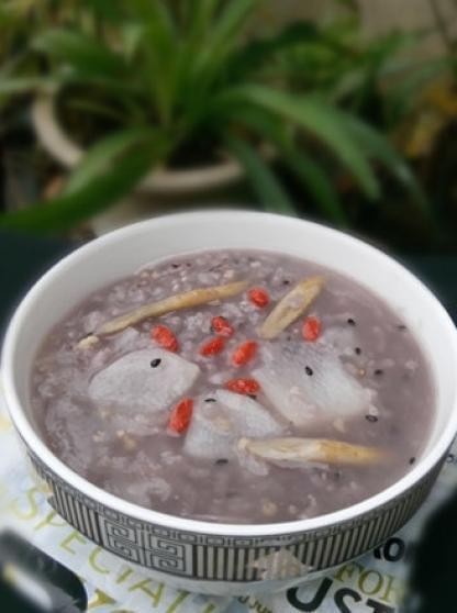 [黄芪山药粥][食材:黄芪,大米,山药] 不要鄙视如许一碗粥,它但是一道补气健脾的养胃粥,此中黄芪其有加强机体免疫功用、保肝、利尿、抗衰老等的感化,自古就有效黄芪泡水,煲汤的做法;山药能健脾益胃,助消化,还能中途夭折;黑芝麻能够滋补肝肾,润肠···加上小米,红米和黑糯米,养分丰厚,出格适合体虚病人食用。