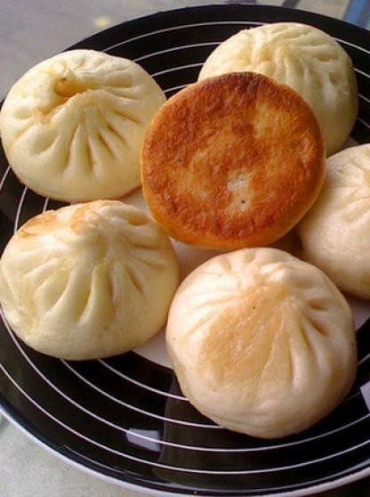 [生煎包][食材:面粉,五花肉] 生煎包为上海的名小吃,听说已有上百年的历史了。 其特性为:皮酥,汁浓,肉香,精致。 外皮底部焦脆,上半部撒上一些芝麻和葱花闻起来香香的,咬上一口肉香,油香,芝麻香,葱香混淆在一起在口中久久留香。 废品色白软而松,肉馅鲜嫩。