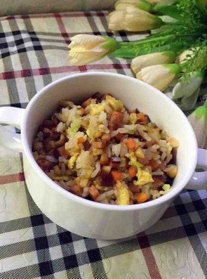 [三丁炒饭][食材:米饭,火腿,胡萝卜,香菇,鸡蛋] 学会这道菜,再也不必闹心剩饭没方法处置了。