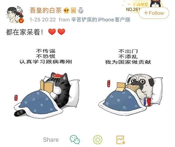 “虽然家里能做的事情有限,偶尔也感到憋屈,但是一想到不能让前线医生们的辛苦白费,家里蹲已经是最轻松的事儿了。”很多网友表示,还是要珍惜死宅就能为国家做贡献的机会。