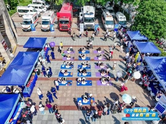 活动中,市第一人民医院、市红十字会医院(市应急医院)、广州医科大学附属中医院等10余家市属高水平医疗卫生机构80余名专家及市红十字会志愿服务工作委员会10余名志愿者参与现场活动,展开烧烫伤及常见中毒处置、心理咨询、中医体质辨识、常见传染病防治等现场咨询,组织救护师资开展心肺复苏及AED操作使用等现场教学。