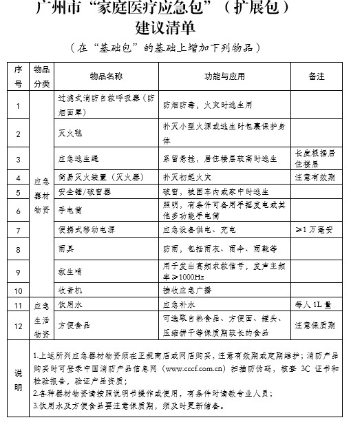 广州发布家庭应急包建议清单,含7类32款药品医用品