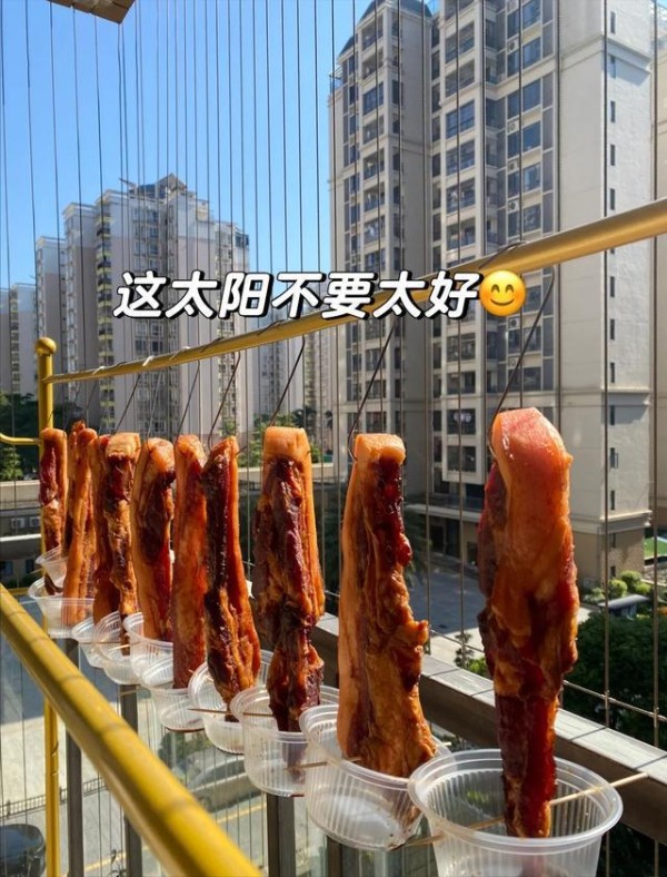 又到了一年一度晒腊肉的季节。以前在乡下住,直接就往大门口一放,门前有小院,宽阔无比,根本不用担心滴油滴在地上的事。可入住城里,每次晒腊肉都避免不了滴油的问题。
