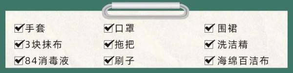 在扫除前几天,我们可以先盘点一下家里的工具是否齐全,缺少的可以及时购买。一般大扫除需要: