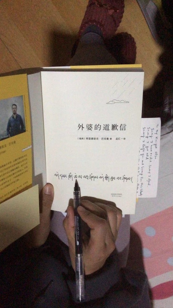 央金为姐妹留下的藏文祝福语,并逐字解释。