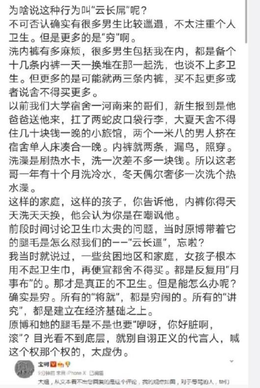 没过多久,一个男大V站了出来,大意是说:男人的内裤做不到一天不换,有的是因为太穷。女人希望男人的内裤一天一换,这是在打女“女拳”。