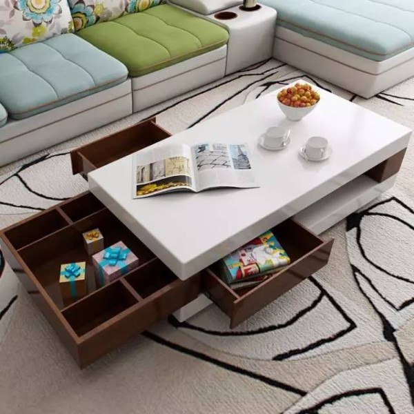 现在许多的茶几都具有一定的收纳功能,并且造型也是多种多样。为客厅添上一款多功能的茶几不仅可以满足我们日常的会客需求,还能成为客厅一样很好的装饰。