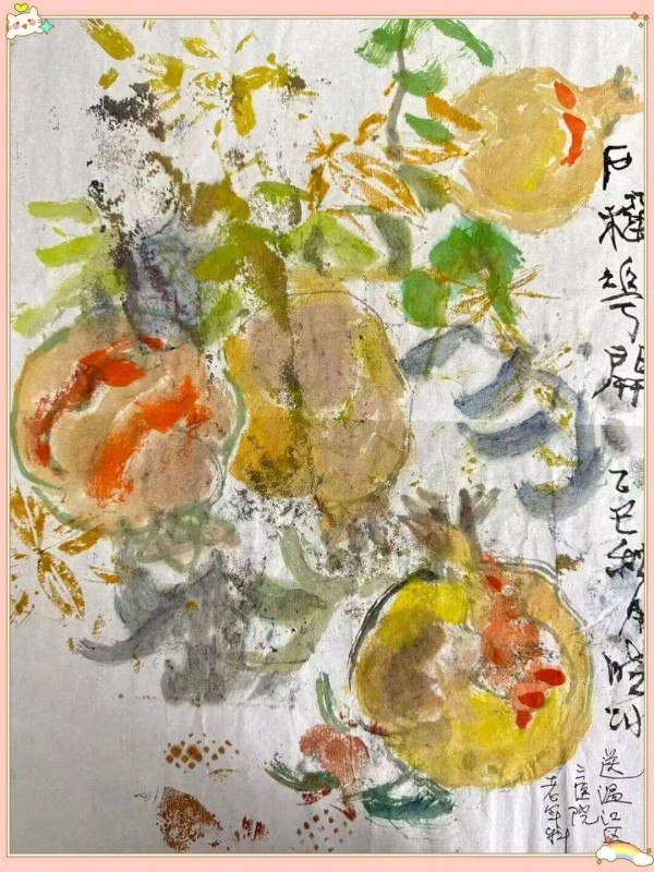他亲手绘制了一幅《石榴花开》,郑重地送到医护人员手中,他解释道:“石榴多籽,象征我们一家人紧紧相依;红花绽放,就像你们为我们点燃了新的希望。是你们的仁心仁术,让我们重拾生活的光。”