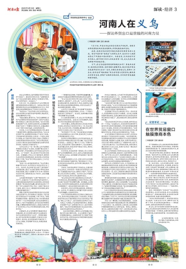 今年5月份本报记者一行在义乌探访时,正值“关税战”阴霾,但通过大量走访,近10万活跃在商贸一线的河南人,大都如同王延昌一般,有焦虑但更多的是积极,有压力但更多的是韧性。