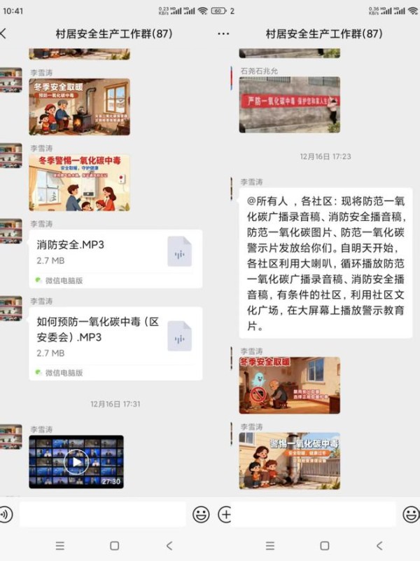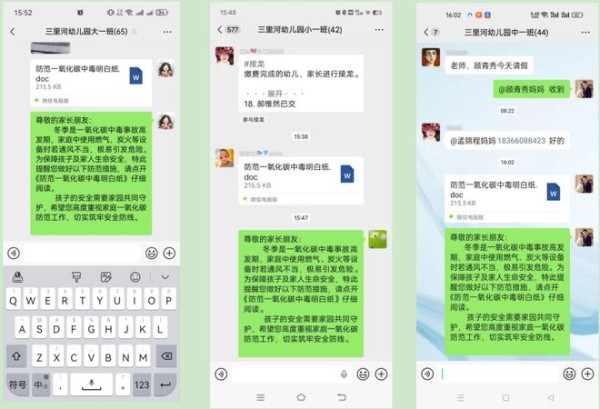 校园通过各班级微信群,推送图文并茂的预防一氧化碳中毒科普知识。内容涵盖一氧化碳的产生原因、中毒症状、急救措施及日常预防方法,并辅以生动的动画短片,方便家长与孩子共同学习。