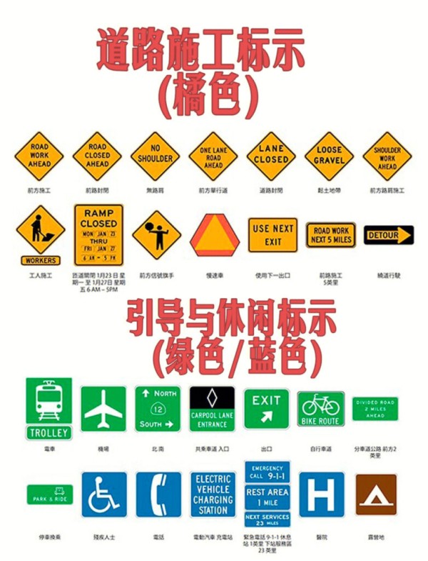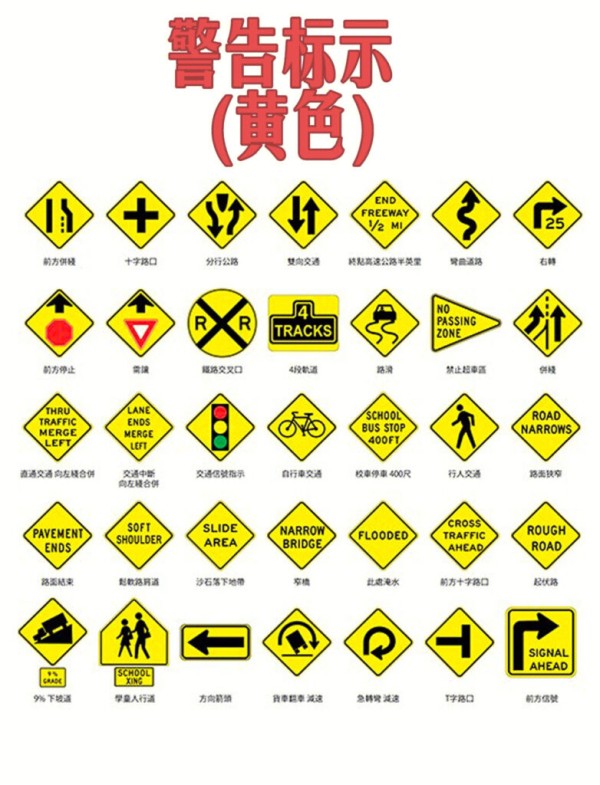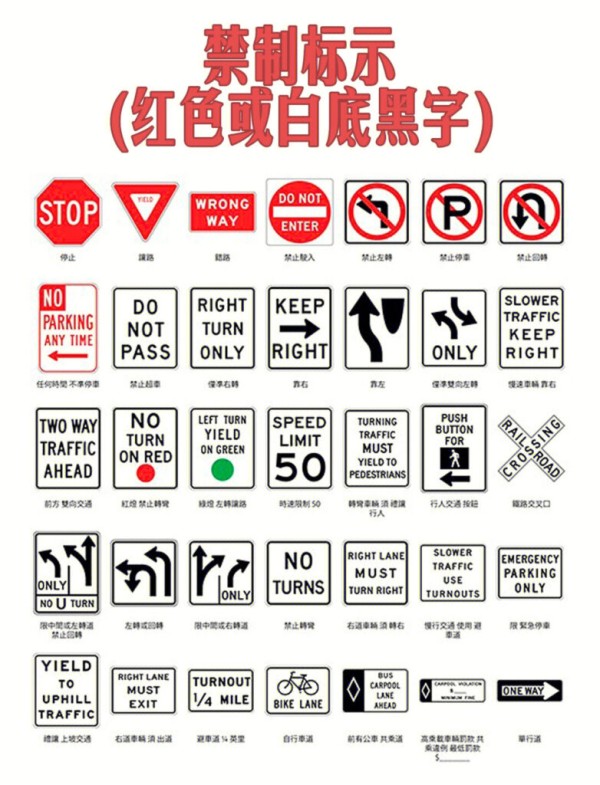 美国DMV驾照路考时一定要注意以下标志和规则: