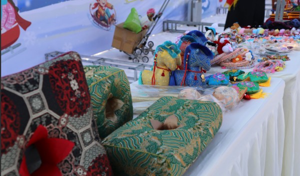非遗匠心?文创好物展销区,感受传统文化魅力。汇聚18项国家/自治区级非遗衍生品,六合枕、手工银饰、剪纸、羊脂皂等文创好物整齐陈列,非遗传承人剪纸窗花、羊脂皂刻纹,让非遗文化以更有趣的方式走进生活。