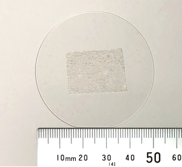 这是制备的氮化硼光学晶体照片,照片中间长方形的样品区域是氮化硼材料。新华社发(作者供图)