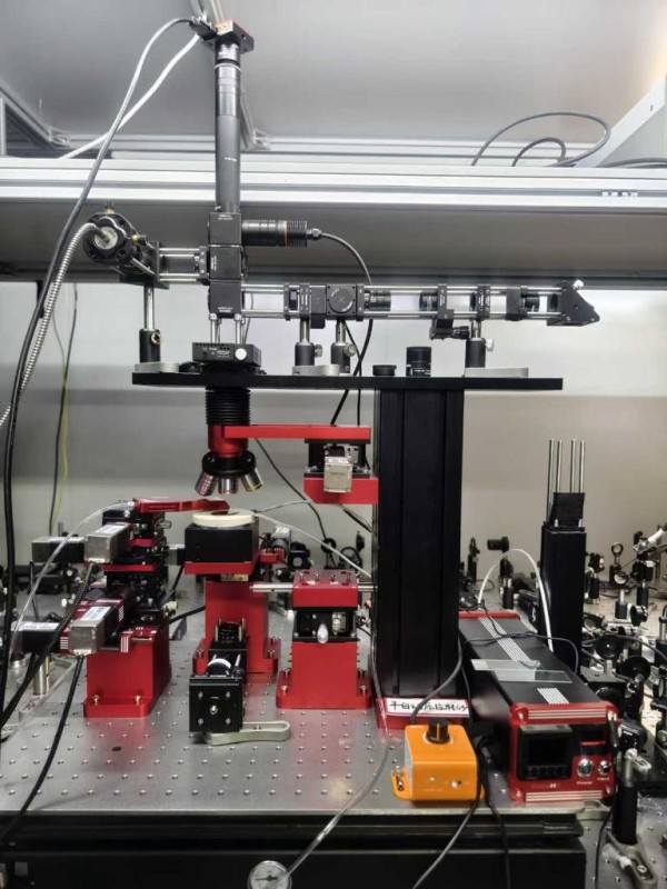 这是自主搭建的高精度半自动原位转角叠层光学晶体转移台,可进行光学晶体高精度转角堆叠并实时监控激光输出效率,最终实现高效转角光学晶体构建。新华社发(作者供图)