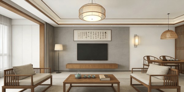 客厅摒弃繁琐的组合沙发,选用单人+双人原木沙发,搭配素色棉麻坐垫,中间摆放低矮原木茶几,台面可放置青瓷茶具、古籍绘本,还原宋式文人雅集的闲适。电视背景墙无需复杂造型,仅以浅灰色墙面为底,悬挂一幅宋式山水挂画或书法作品,下方搭配窄边原木电视柜,收纳杂物的同时保持视觉整洁。