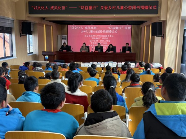 近日,“以文化人 成风化俗”——“环益童行”关爱乡村儿童公益图书捐赠仪式在官港镇中心学校举行。东至县委宣传部副部长丁松,全国人大代表、东至县新时代文明实践服务中心主任丁德芬,官港镇宣传委员陆霄霄,东至县作家协会主席、官港镇中心学校副校长王孝纯,官港中心学校副校长姚晓明参加捐赠仪式。
